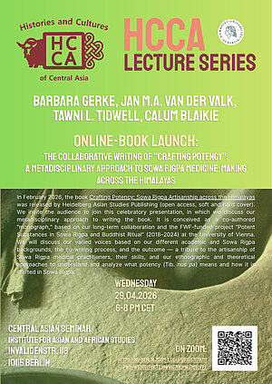 The book launch & discussion are part of the HCCA (Histories and Cultures of Central Asia) Lecture Series at the Institute for Asian and African Studies at Humboldt Universität zu Berlin.