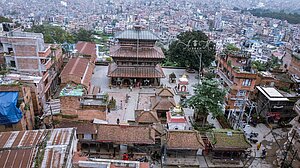The Bāghabhairava complex is the religious and cultural centre of Kirtipur. Situated at the centre of the city, the Bāghabhairava complex is locally known as Ājuthāy (lit. at the deity’s place). Bāghabhairava is the oldest and the largest temple in Kirtipur. The residents of Kirtipur worship Bāgabhairava as their favourite deity (arādhyadeva) and call him Dhũ-āju (the deity in the form of a tiger). The Bāghabhairava temple area is also known as Gũde but is vernacularly referred to as Gunay. Thus, in an inscription from 1587 CE (NS 707), Bāghavairava is called Gundesthānādhipati (lit. the lord of the place called Gunde). There is no documented evidence to date the initial construction of the Bāghabhairava Mandira. The earliest inscription related to this temple was issued in 1514 CE (635 NS), recording its renovation by Jagatpāla, a powerful local functionary (mahāpātra) of Patan. This is one of the temples in the Kathmandu Valley which survived in its original architectural style (Tivari 1994, p. 130).