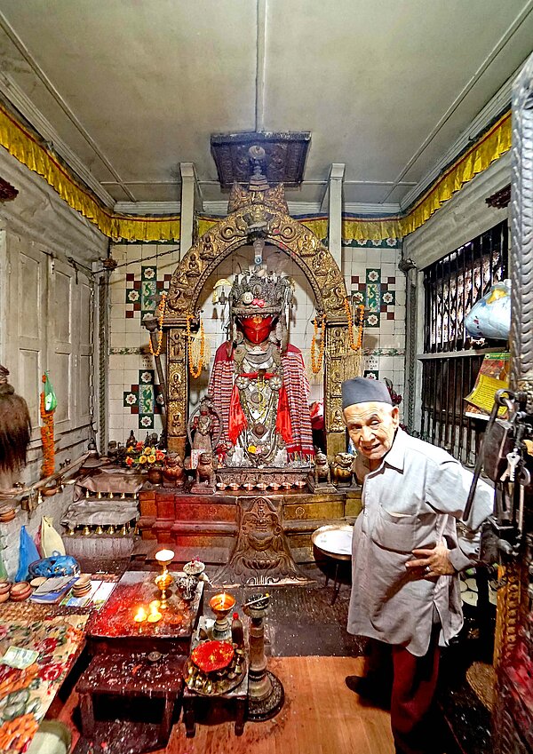 Āḥjudyaḥ Bāhāḥ is a god-house (dyaḥchẽ) and not a proper bāhāḥ. The enshrined Dīpaṅkara technically belongs to Pasu Bāhāḥ (BKT0220). Two inscriptions refer to Dīpaṅkara as Ajājudeva (lit. ancestral deity) and he is therefore believed to be the most senior Dīpaṅkara among the five Dīpaṅkaras of Bhaktapur. Local residents revere Dīpaṅkara as their ancestral deity (āḥjudyaḥ). People from neighboring towns like Thimi, Nagadeśa and Boḍe worship the Dīpaṅkara before organizing a major feast. Buddhist monks come from as far as Manang, Mustang and Solukhumbu to worship Dīpaṅkara.