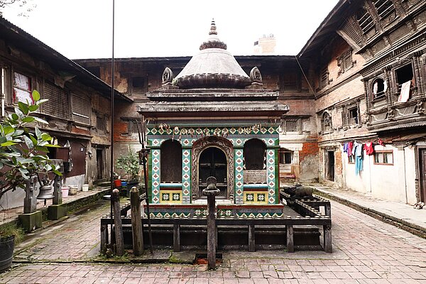 Chāy Bāhāḥ Maṭha (LAL0751) is one of the five monastic buildings in Patan that belong to the Daśanāmī ascetics. The other four include Calkhu Maṭha, Bāhālukhā Maṭha, Tuilākva Maṭha and Tum Bāhāḥ Matḥa. These maṭhas have a direct connection to the ascetic orders set by Śaṅkarācārya, a renowned ascetic and philosopher, who is credited to have started the maṭha tradition in India in the 8th century.