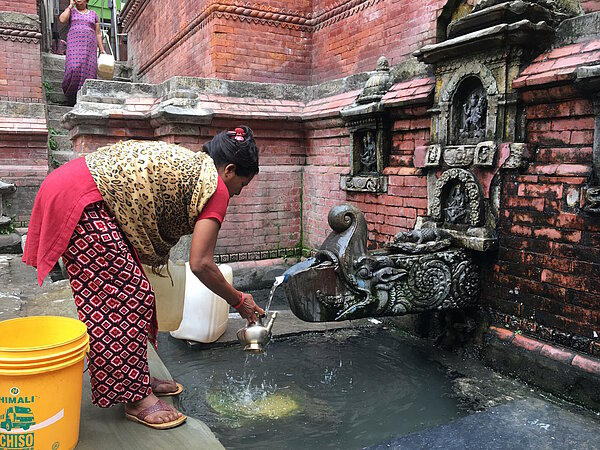 Although many waterspouts in the Kathmandu Valley have lost their significance, Maru Hiti continues to be a place for worship and social interaction. Devotees, who participate in the religious procession of upākhā, taking place on the twelfth day of the bright fortnight of Bhādra, have to wash their faces in this hiti. The hiti was a resting place for travellers entering the core city of Kathmandu via Kaṅkeśvarī. It has five water spouts decorated with stone statues but only two still have flowing water. The hiti used to be cleaned during the Sithinakha Festival held on the sixth day of the bright fortnight of Jyeṣṭha and there used to be a guthi of Mahajans that provided food for the participants. This tradition has been discontinued and the guthi is inactive. However, the Maru Hiti Club, a local youth organization, cleans and takes care of the hiti from time to time. According to Shankar Maharjan Dongol, the former president of the club, the hiti was restored fifteen years ago. Concrete pavement was removed and replaced with traditional bricks.
