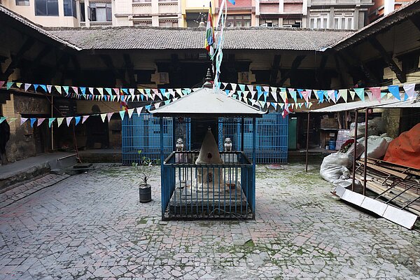 Pinchẽ Bāhāḥ (also known as Khũ Bāhāḥ, DANAM ID: KAT1400) is one of the very few monastic buildings in Kathmandu of which its historic structure could be retained. This branch (kacābāhāḥ) of Taḥdhaṃ Bāhāḥ (KAT1420), situated in Vaṭu Ṭola, was founded by a resident of Taḥdhaṃ Bāhāḥ in 1593 CE (NS 713), during the reign of King Śivasiṃha Malla. The main building or God House (dyaḥchẽ) is north facing and has wings that branch out to the west, north, and east. The monastery’s esoteric room (āgaṃ) is located on the first floor of the dyaḥchẽ, the sanctum, holding a stone statue of the site’s main deity (kvāḥpāḥdyaḥ) Akṣobhya, is located on the ground floor. As it is common practice, a wooden toraṇa is placed above the main entrance to the sanctum. Erotic carvings can be found on the struts that support the roof of the northern façade of the courtyard, something exceptional for a bāhāḥ. During the Rāṇā period, Pinchẽ Bāhāḥ was converted into a prison, thus also being names as the Khũ, the monastery of thieves (cf. Locke 1985, p.352). The Nepal Heritage Documentation Project is dedicated to documenting such unique cultural places in the Kathmandu Valley and beyond, and to contributing to their preservation via systematic documentation. More details on this bāhāḥ can be found here.