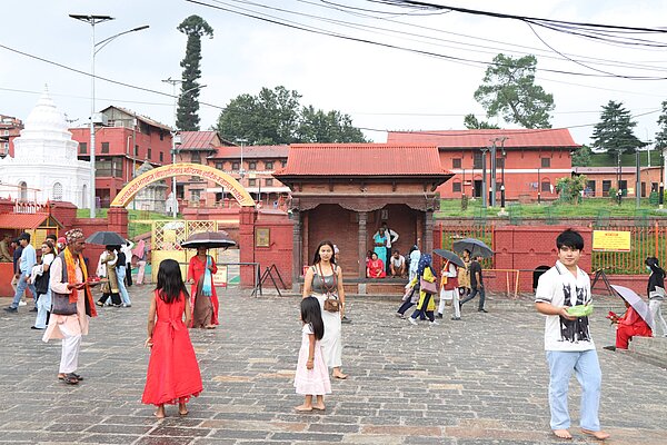 This historic pāṭī (phalcā) [DANAM ID: PPK0930)], situated north of the main road leading to the Ārya-ghāṭa cremation ground, holds profound significance. Once part of the 'Kolāchi Ṭoḷa' surrounded by traditional houses, it stands as the sole survivor post-settlement removal for Paśupati area's development. Notably, this phalcā deviates from typical Newari architecture with two bays, an exception to the usual odd numbers. A 1972 aerial photo reveals its original three-bay structure, later altered during reconstruction. Renovated in 1971-72, an inscription notes arrangements by Mīnashī and Jagatsī in 1866 for regular income and social activities. Renovations by Nānīmāyā and Dhanamāyā occurred in 1997, with recent changes in 2008 by the Pashupati Area Development Trust. Locally named "Pvaḥ Phaḷcā [Poḍe Paṭī]," its association with the Poḍe caste remains uncertain. Despite claims of ancestral construction, historical records raise doubts. The phalcā, a stop during Piṃgamāī's chariot procession, once hosted devotional practices by the Poḍe community, though discontinued over time. The chariot tradition, still preserved, reflects a historical connection. For more information, visit DANAM entry here.
